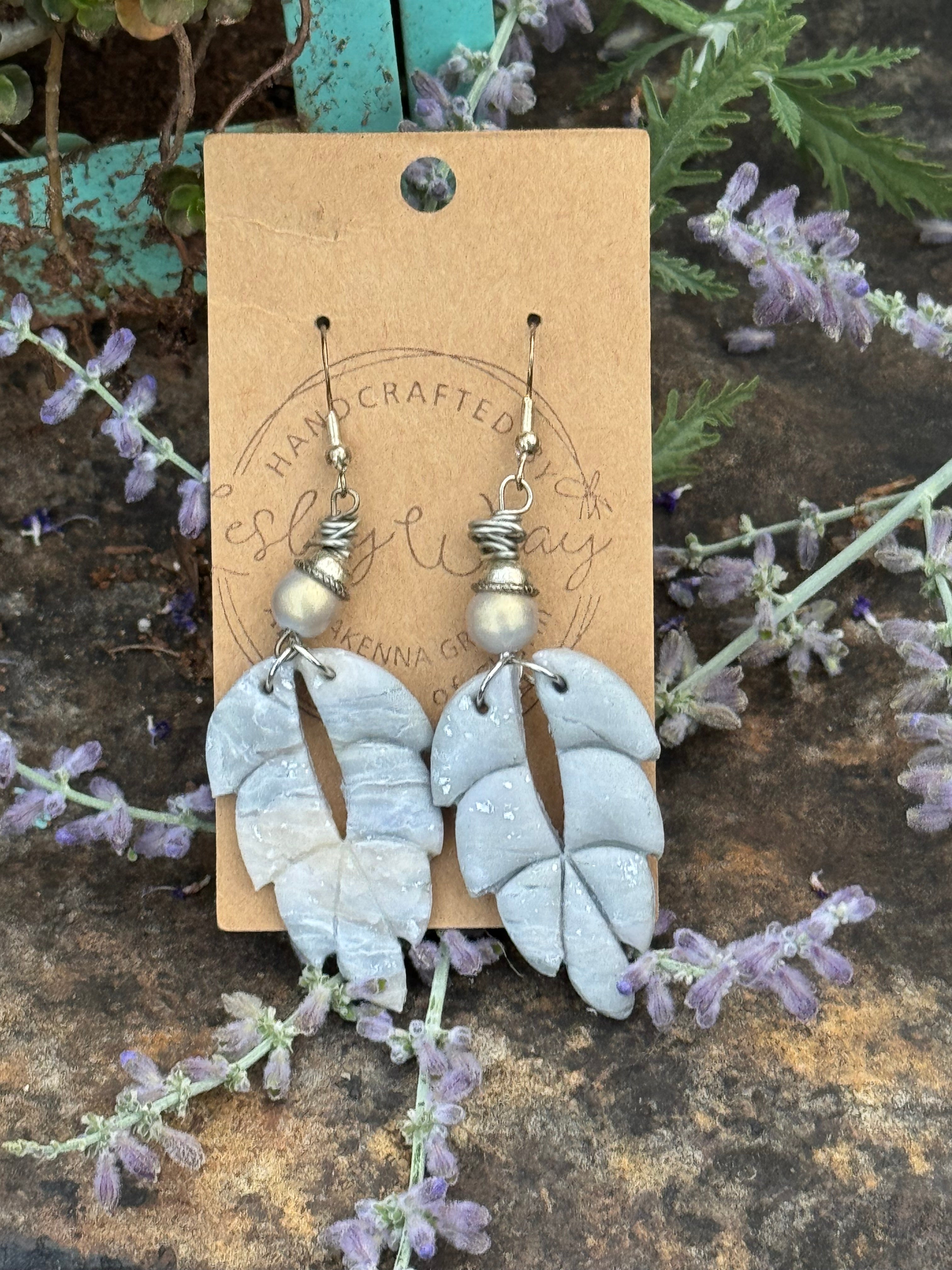 Handcrafted. Lightweight Earrings. Gray & Gold Clay Earrings. E223