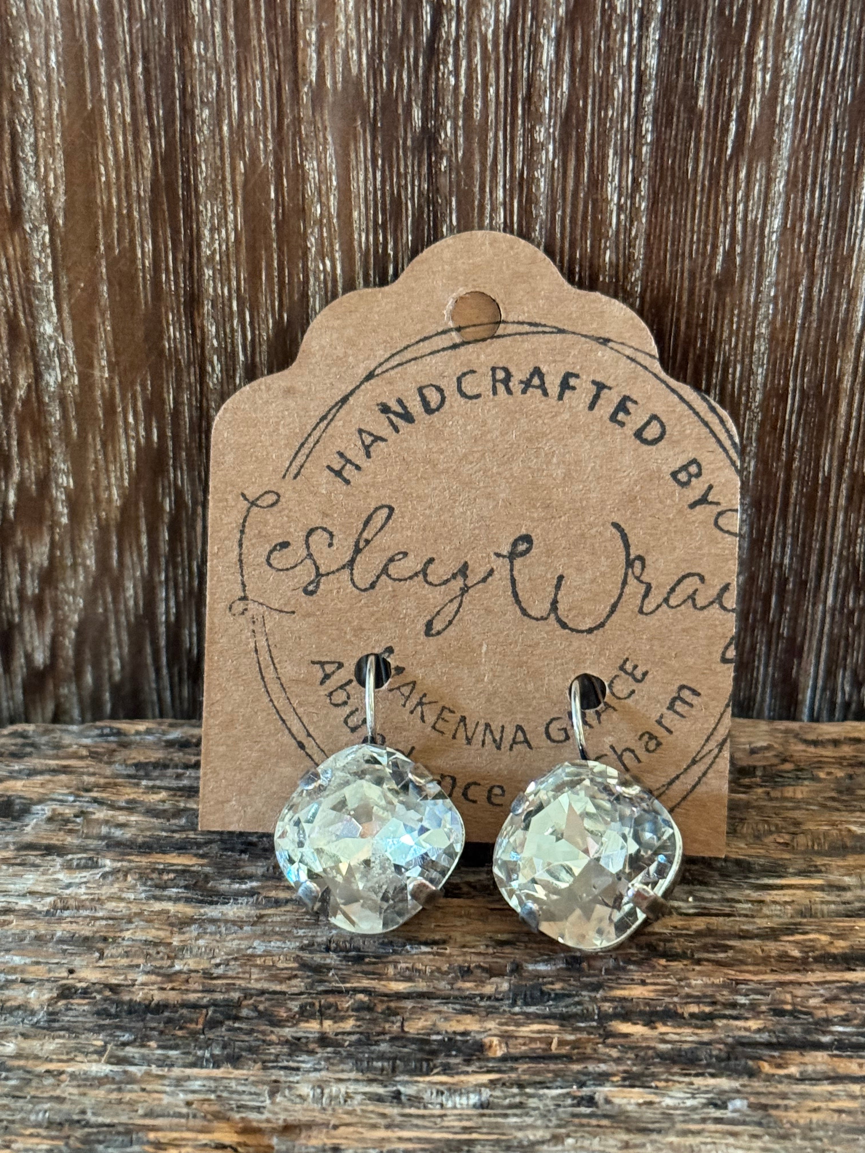 Crafted with Swarovski crystals, these elegant earrings feature a cushion cut Opaque irridescent crystal on a petite dangle design. Add a touch of sophistication and sparkle...