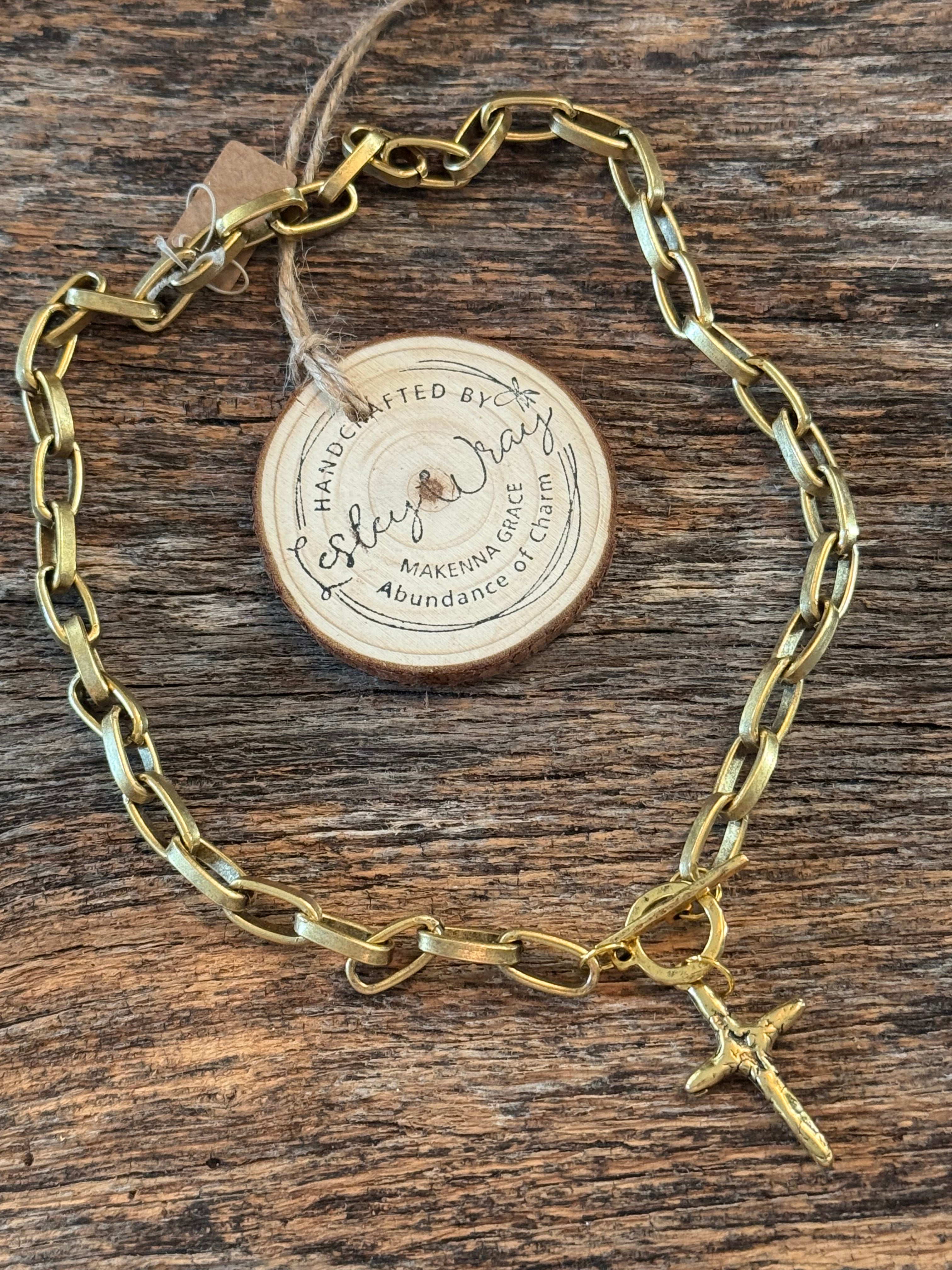 A chunky chain design, this matte-gold front toggle closure necklace features a medium size hammered stick Cross charm . The perfect addition to any outfit, the...