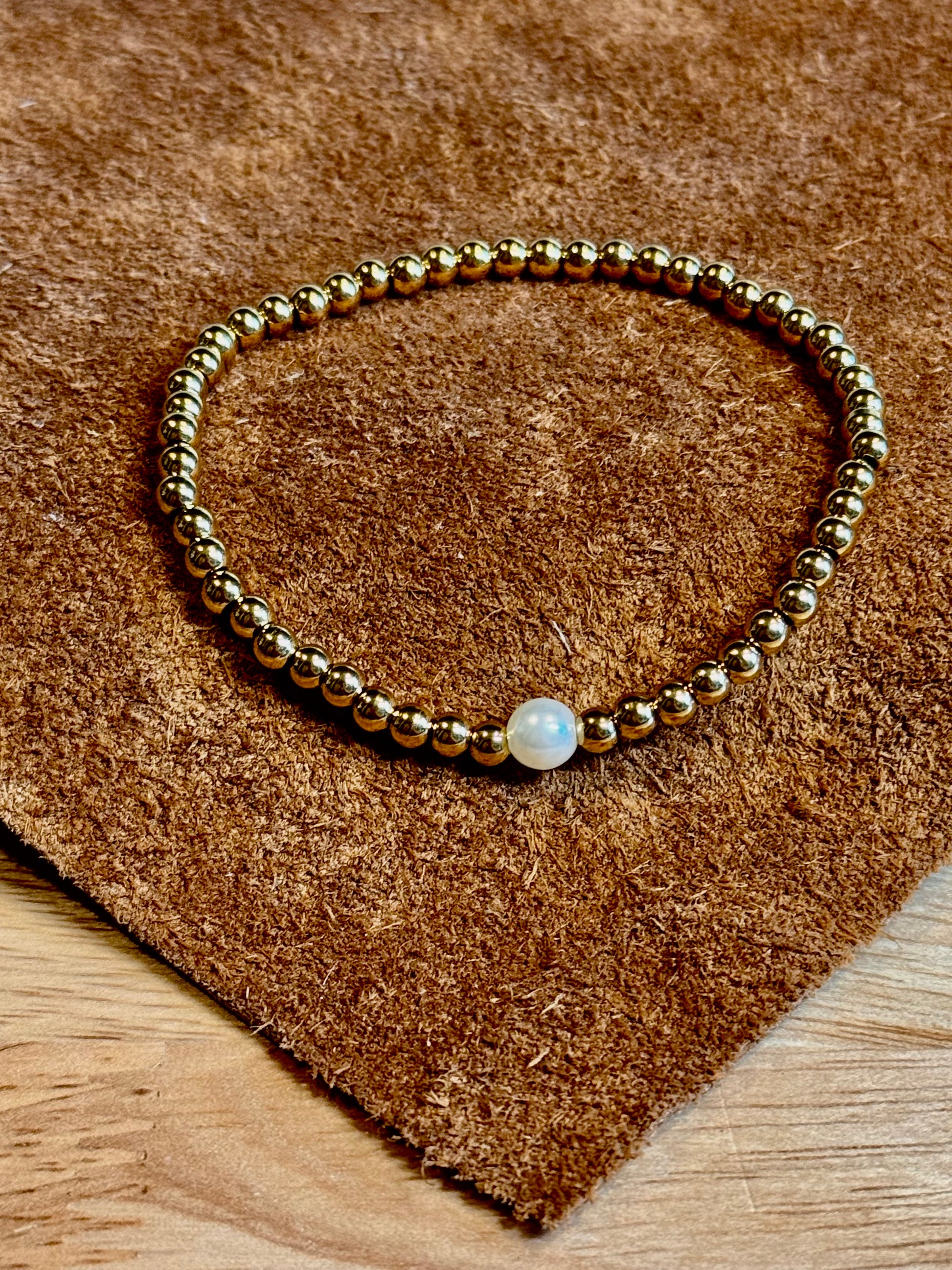 18K Gold PVD Coated Stainless Steel/Pearl 4MM Beaded Stretch Bracelet