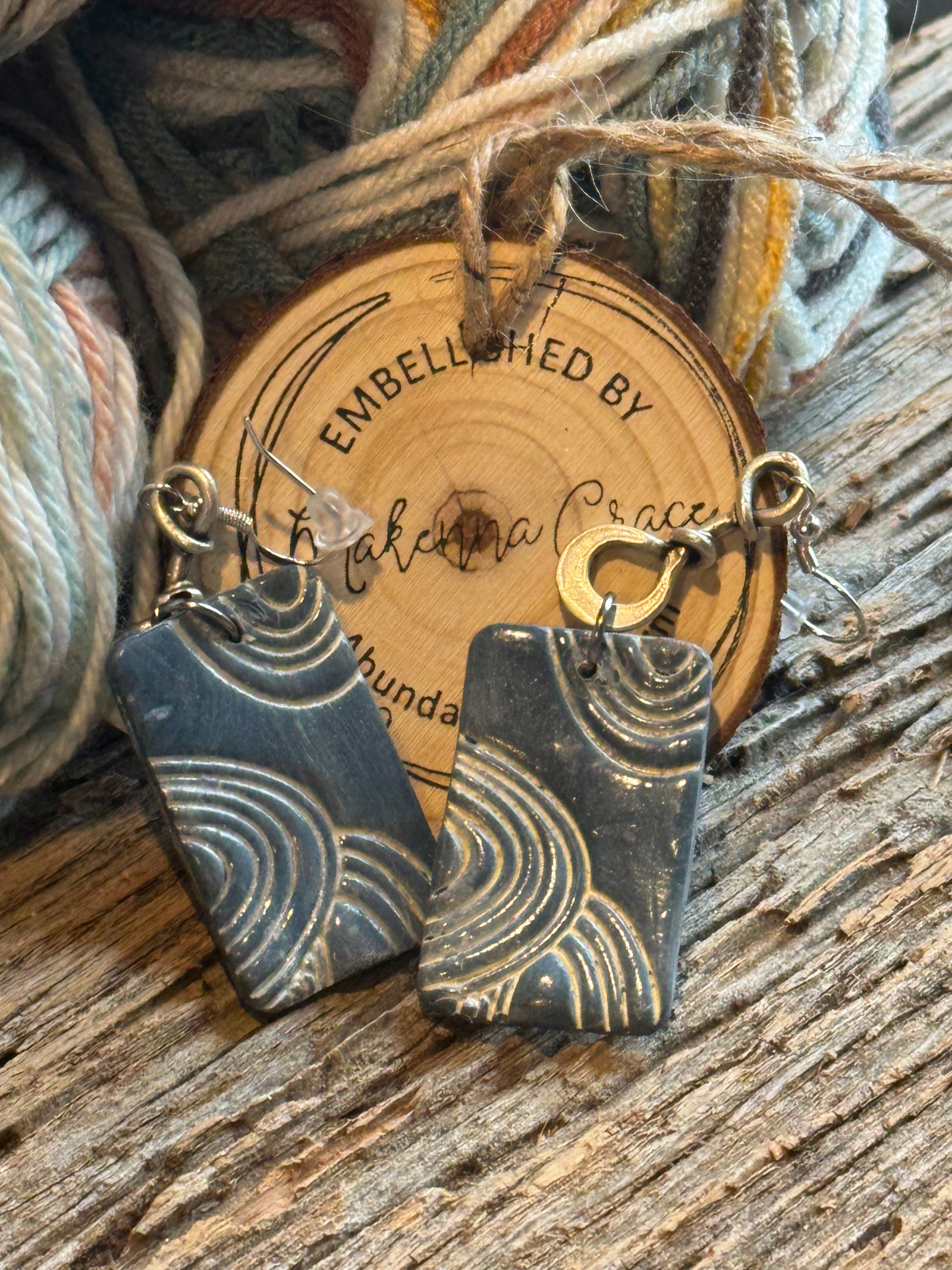 Handcrafted. Lightweight Earrings. Blue White Wash Boho Design Rectangle Wave Clay Earrings Medallion . E255