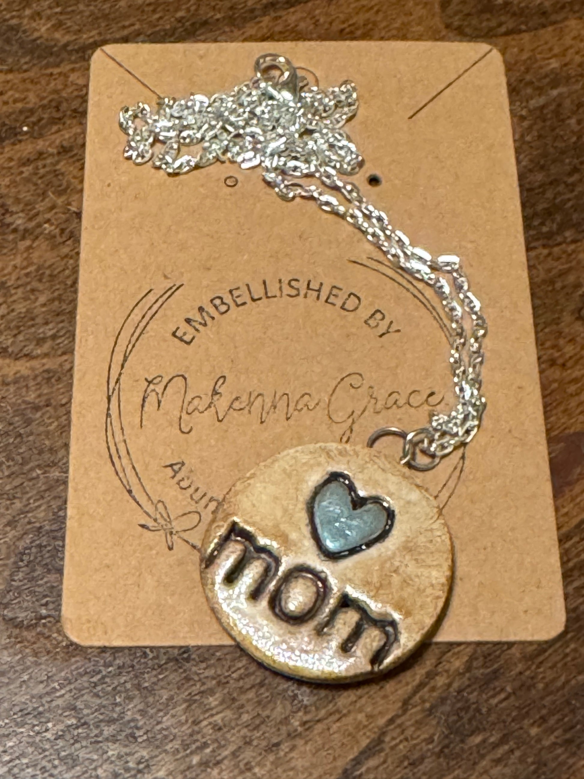 Fall in love with our Clay Mom Charm Necklace! This silver necklace features a beautifully crafted clay charm with MOM and an antique finish. CNN103
