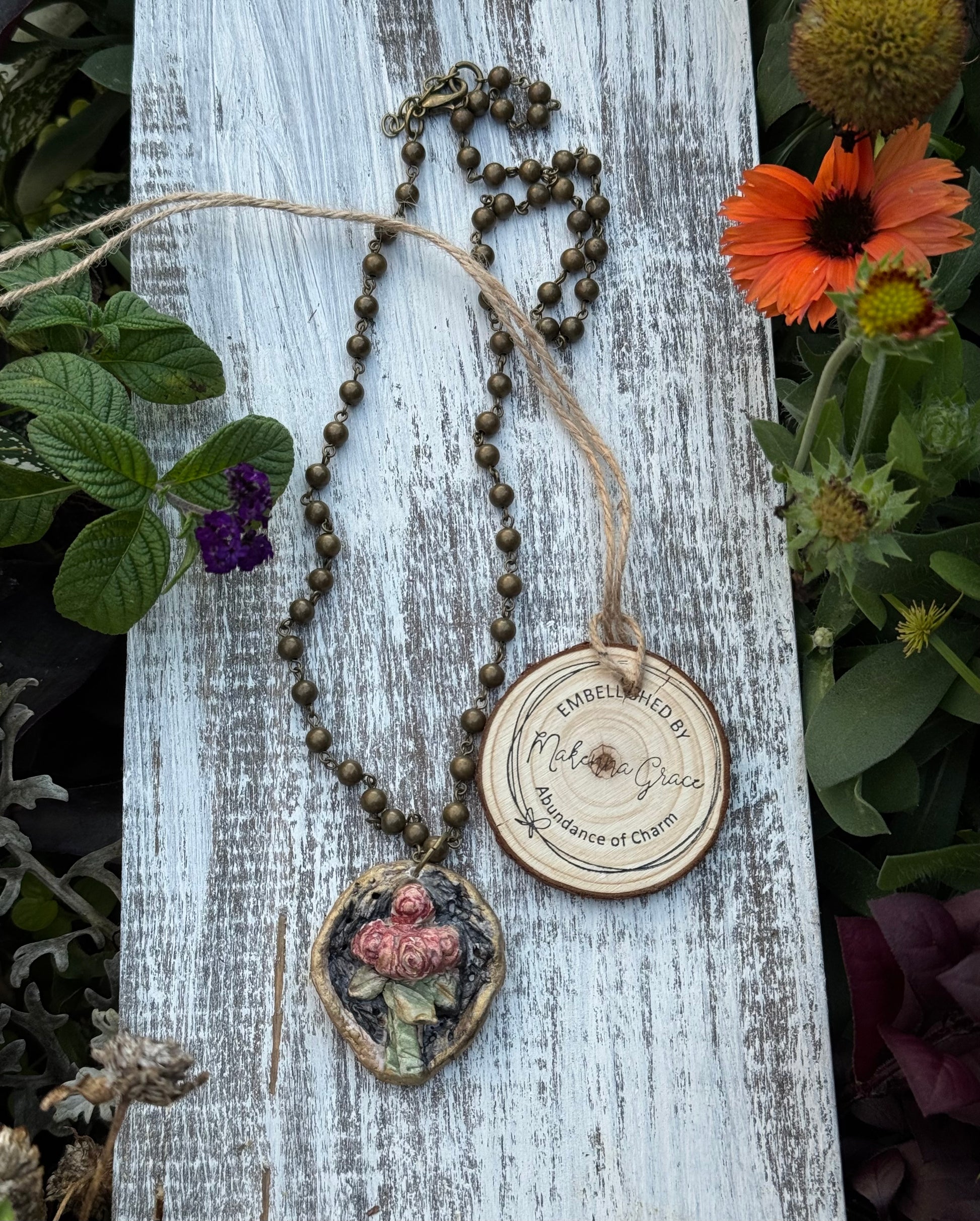 Brighten your look with this Handmade Clay Rose bouquet Necklace! Featuring clay rose bouquet paired with a bronze beaded chain, this necklace adds a fun, whimsical touch to any outfit. Lightweight and unique, each piece is lovingly crafted by hand to bring a burst of personality and joy wherever you go. Perfect for those who love to stand out with a little floral flair! CN1012