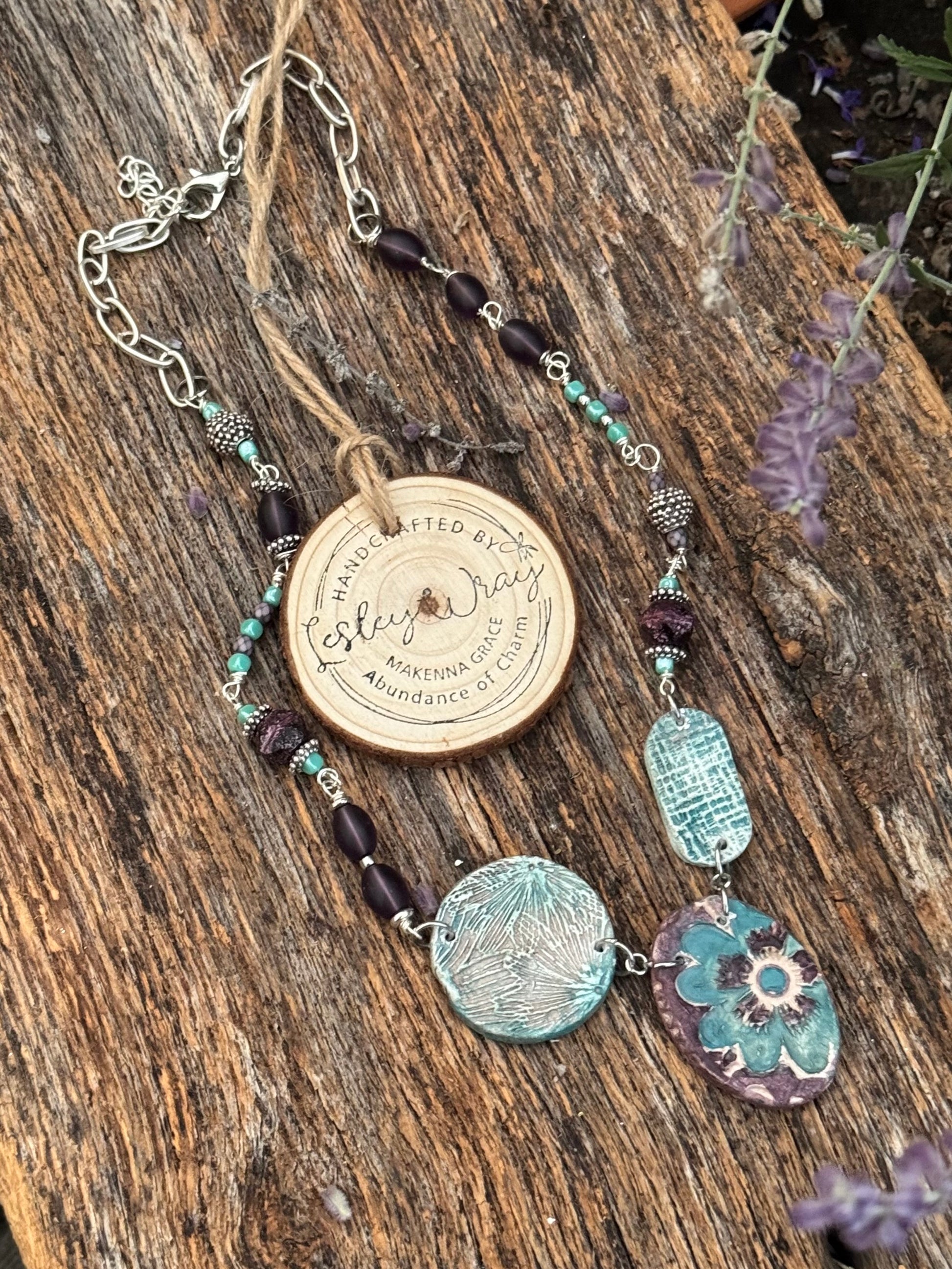 Brighten your look with this Handmade Clay Floral Necklace! Featuring charming clay flowers paired with accent beads in turquoise and smoky purple and a silver chain, this necklace adds a fun, whimsical touch to any outfit. Lightweight and unique, each piece is lovingly crafted by hand to bring a burst of personality and joy wherever you go. Perfect for those who love to stand out with a little floral flair! CN1005